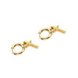 18K gold-plated stainless steel 0.5" cross pendants engraved with "courage" on 0.5" 18K gold-plated stainless steel hinged huggie hoops. #E326G.