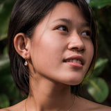 18K gold-plated stainless steel 0.4" pendant with 18K gold-plated sterling silver hook. Available with pink or teal glass stone. #E270P & #E270T.