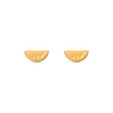 18K gold-plated stainless steel 0.5" semi-circle pendants with mustard seed engraving. 18K gold-plated sterling silver posts. #E298G