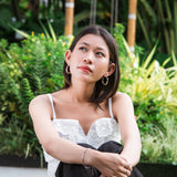 The Leaf of Awareness Earrings are inspired by Eden's passion about raising awareness of the issue of trafficking through stories. The 1.1" diameter french lock hoops are engraved with an intricate leaf pattern. They are available in 18K gold-plated and white gold-plated brass. The posts are natural or 18K gold-plated sterling silver.