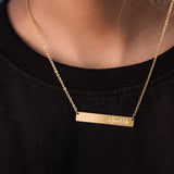 18K gold-plated stainless steel or sterling silver bar pendant and chain, engraved with "Speak Up". 16" with 1.3" extension chain. #N247G & #N247S.