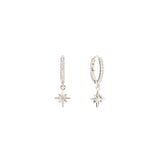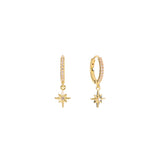 The Empowerment Huggie Earrings feature stunning pavé cubic zirconia set in white gold-plated and 18K gold-plated sterling silver. The 0.5" diameter huggie has a 0.31" by 0.35" hanging star pendant.