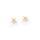 The Empowerment Post Earrings feature a 0.31" by 0.35" white gold-plated and 18K gold-plated brass star set with pavé cubic zirconia on 316 medical-grade stainless steel posts.