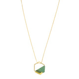 Hand-woven pendant of pink or teal glass beads with 18K gold-plated sterling silver beads on 18K gold-plated stainless steel chain. 32" with 1.3" extension chain. #N281P & #N281T.