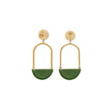 18K gold-plated stainless steel 2.6"H x 1.2"W earrings and posts with handmade polymer clay drop in khaki green & ivory with gold foil. #E331K.