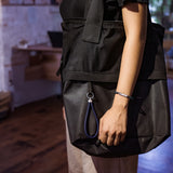 The Light Triumphs Over Darkness Keyring has a 9” long blue braided genuine leather loop. The stainless steel pendant is engraved with a sound wave declaring that "light triumphs over darkness".