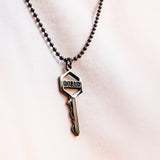 Black hematite-plated stainless steel chain and 1.2" "You are" key pendant. 24.5" in length. #N294D.