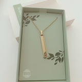 Stainless steel, 1.8" pendant on stainless steel chain, 22" in length.