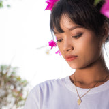 The hammered texture of Eden's Resilience Leaf Necklace represents the perseverance of trafficking survivors as they overcome injustice and trauma. The beautiful 0.75" x 0.5" leaf pendant demonstrates that new life is possible once a survivor comes into our program. The pendant sits on an 18" paperclip chain with a 1.3" extension chain. All materials are 18K gold-plated stainless steel.