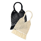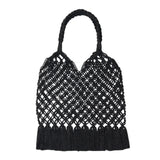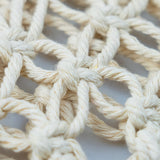 Hand-woven 3-ply cotton macramé bag. 41cm x 33cm x 30cm. Available in black, cream, and white. #A100B, #A100C, & #A100W.