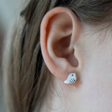 Sterling silver bird and leaf posts, 0.4". #E267.